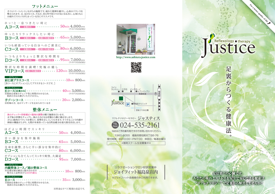 ジャスティス様は福島市で足裏マッサージ・整体をされています。 足裏反射区療法は一度体験の価値がありますよ!